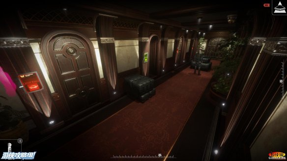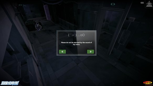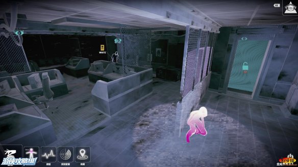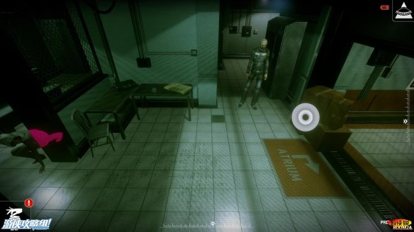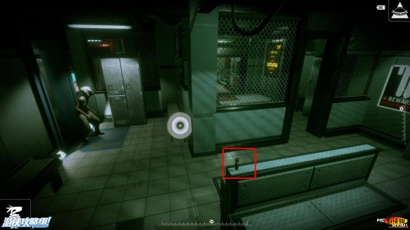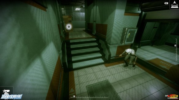 之后往前走,这里也有一名卫兵,之后的门通过就结束1-1的关卡了。这个卫兵的巡逻路线也比较简单。注意一些的话可以绕开他进入门里。或者用喷雾剂来解决他。