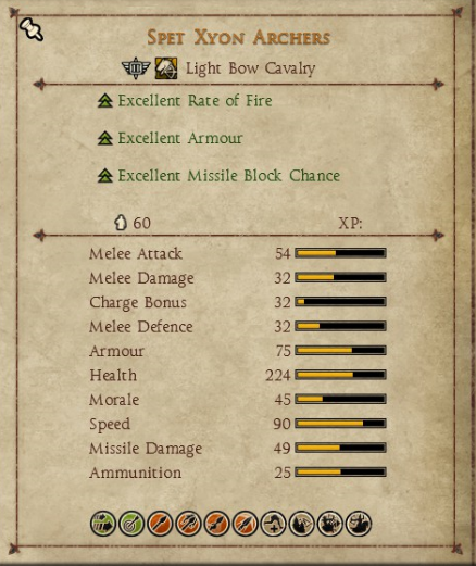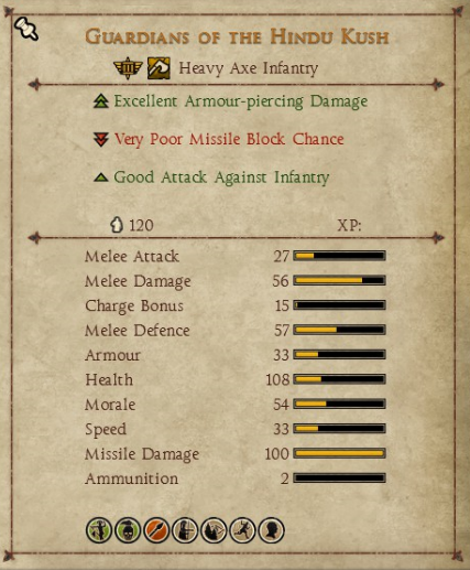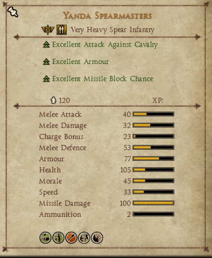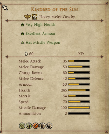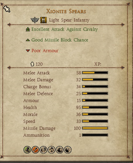优势:高伤害、高破甲、优秀的士气及防御、两轮投矛及技能。
