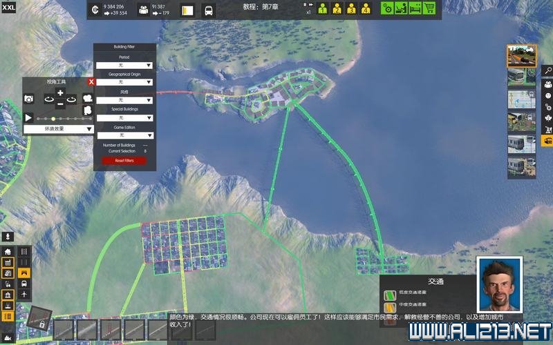 在初始道路修建完毕后,玩家可以通过右侧控制栏了解交通的具体情况。
