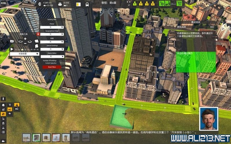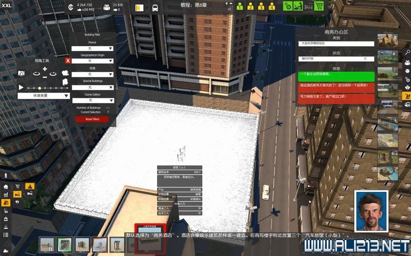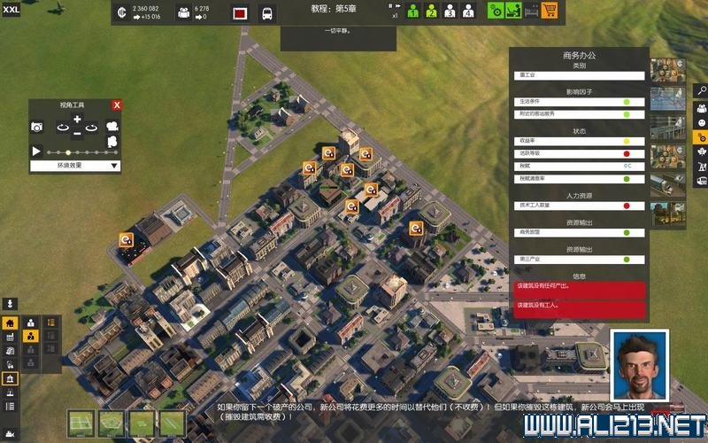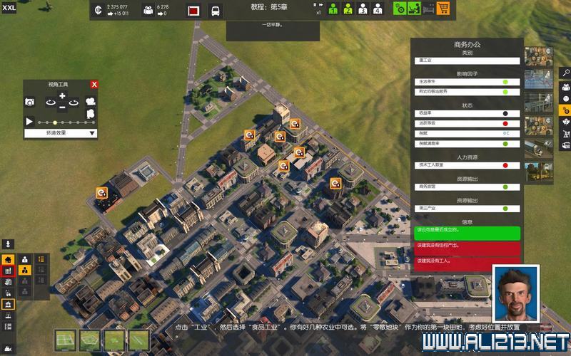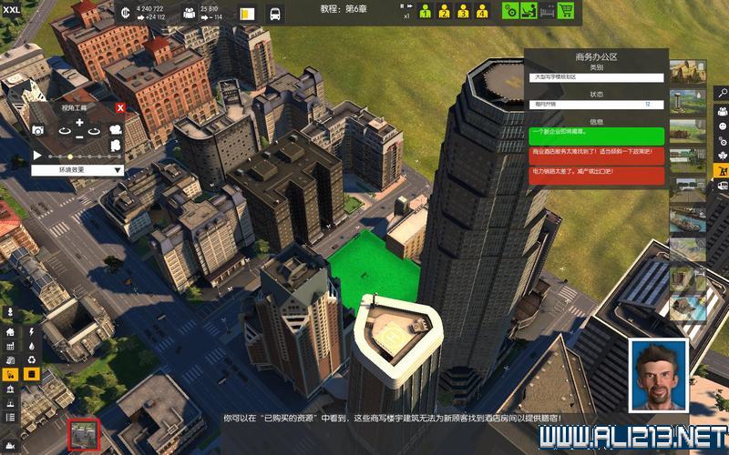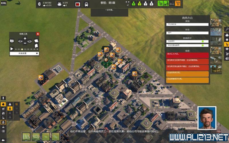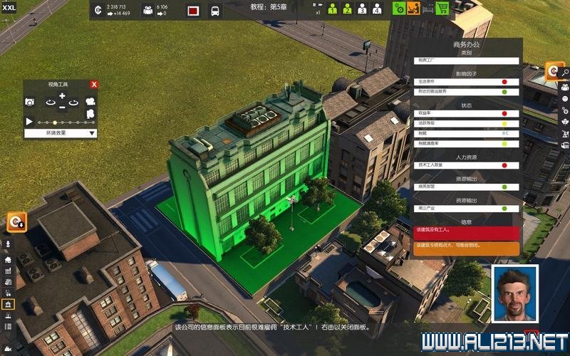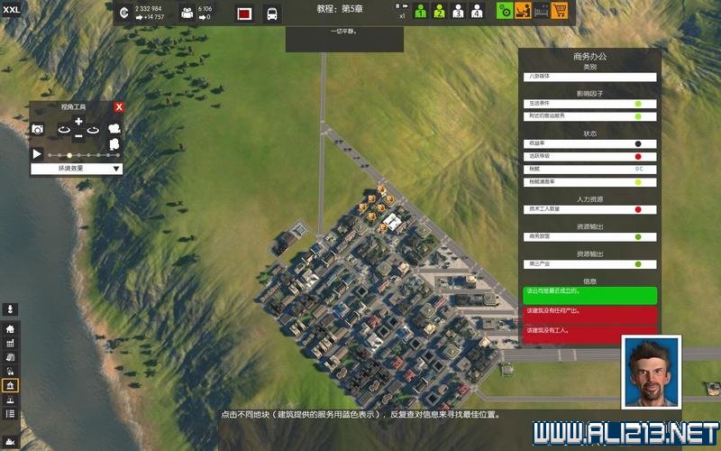 这时查看修建地块,可以看到该商务办公区缺少哪种支持。