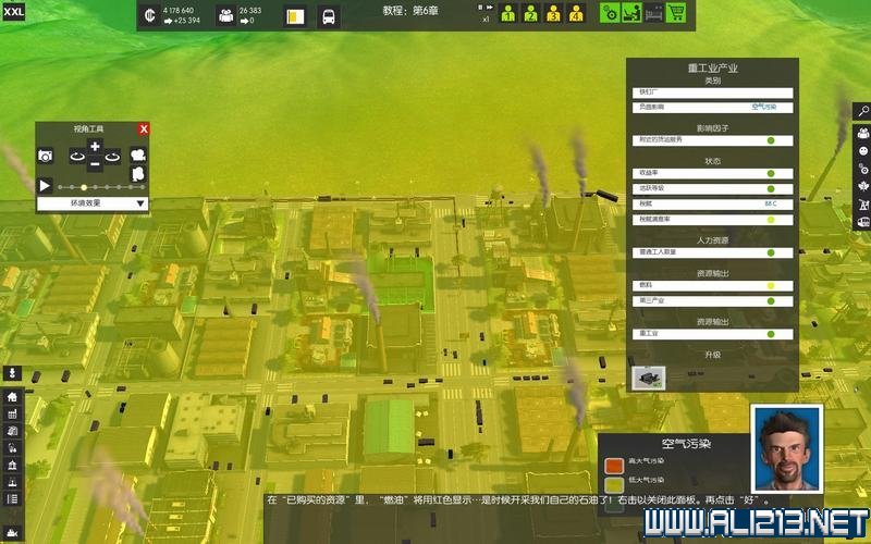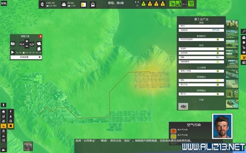 注意查看城市的污染情况,从绿色到红色,环境问题是工业发展的瓶颈。