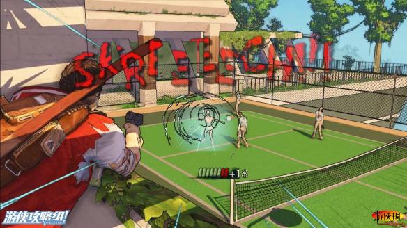 在网球场旁边高处的平台上用枪就可以将它放倒。