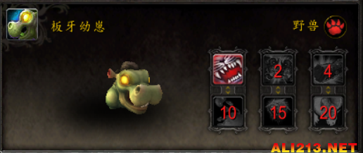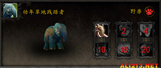 技能:1-践踏 2-原始嗥叫 4-迎头冲撞 10-撞击 15-憨头憨脑 20-奔踏