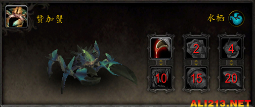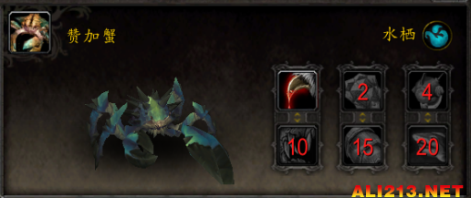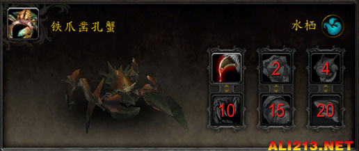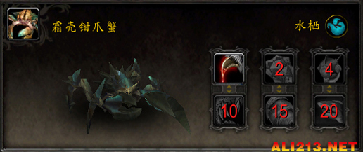 技能:1-割裂 2-多刺甲壳 4-潜水 10-爪击 15-甲壳护盾 20-沐血