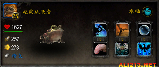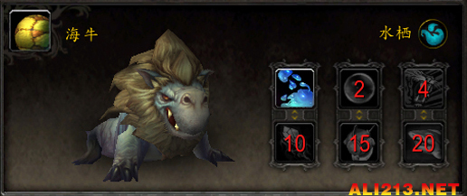 技能:1-撕咬 2-打倒 4-痛殴 10-水流喷射 15-石肤术 20-迎头冲撞