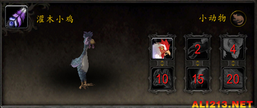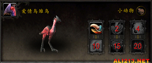 技能:1-啄击 2-痴情 4-信息素 10-阿尔法打击 15-鹰眼 20-掠食之击