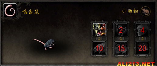 技能:1-撕咬 2-蜷伏 4-跳跃 10-乱舞 15-嚎叫 20-缭乱之舞