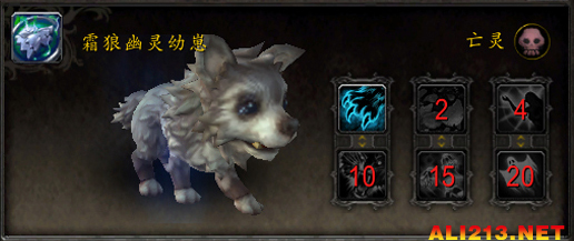 技能:1-重蹄 2-吞噬魔法 4-幽魂之咬 10-疫病之咬 15-虚无之界 20-鬼影缠身