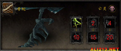 技能:1-鞭笞 2-吞食尸体 4-昏晕之种 10-撕咬 15-治疗波 20-纠缠根须
