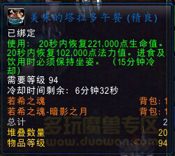 工头的午餐盒:永久的食物。15分钟CD,30秒内回复221000的生命和102000的法力值。之前介绍了一个回复60%的永久食物道具,喜欢用哪个还看个人爱好咯。