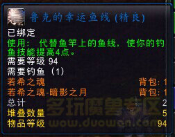 鲁克的幸运鱼线:钓鱼线,附魔在鱼竿上增加4点钓鱼技能。