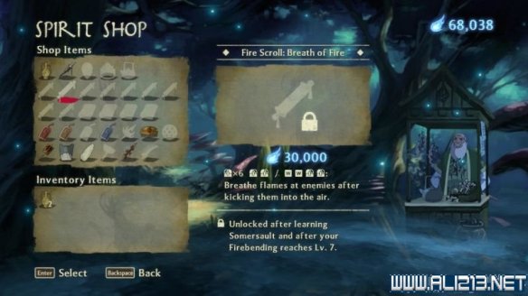 在商店内可以花费魂来购买消耗品(回血药物)以及招式卷轴。药品一般都相对便宜,而招式卷轴就颇高价格。