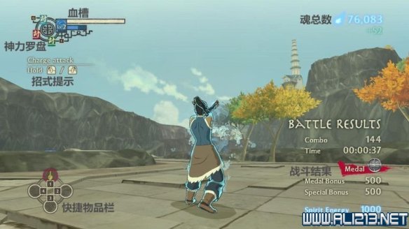 屏幕右侧会出现的是科拉击打敌人的连击数,连击数越多,之后获得的魂也会越多;