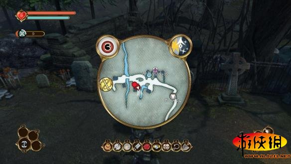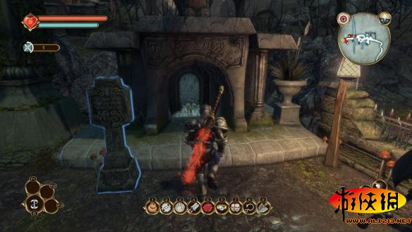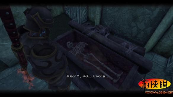 首先去墓园尽头处找到诺斯楚的墓穴,他告诉我们,我们需要替他找到他丢失的护甲、头盔、剑、护盾,他才会给我们放行。