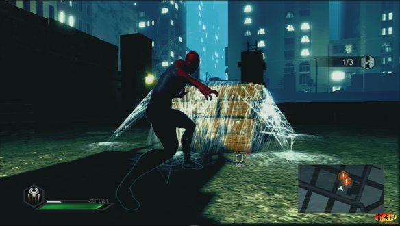 然后这个下水道里有蜘蛛侠的第二套服装,然后成为黑色蜘蛛侠。但是其实这时候已经被女追踪者跟踪,并且准备要撒害你了。追踪者其实垃圾,一圈蒙地上即可完成任务。