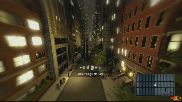 然后这款游戏一开始不是飞啊飞啊,一开始是先跑。发现一个蜘蛛大师被人暗杀,然后主角就变成蜘蛛侠,然后灰了起来。这里要说一下怎么灰,就是左摇杆+LT/RT就可以在城市中飞行。