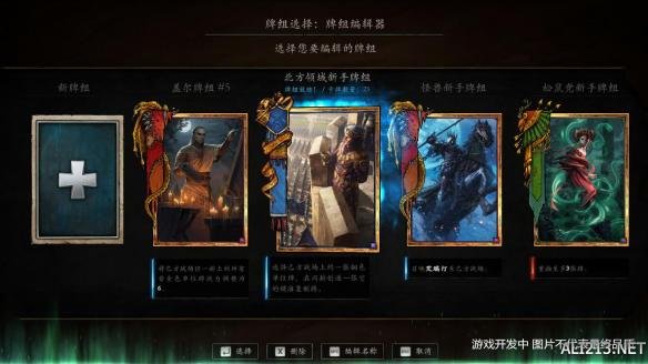 这组截图囊括了卡牌展示、抽卡、卡组编辑器、开卡多个界面,字体选择上看起来很舒服,从中我们还可以看到熟悉的盖尔、北方领域、怪兽、松鼠党这些熟悉的牌组。而卡牌左端各阵营的标志,相比《巫师3:狂猎》中显得更加华丽呢。当然,这些都还是开发中的画面,最终品质如何?敬请期待……