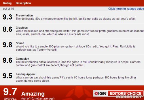 《侠盗猎车手:罪恶都市》IGN游戏评分:9.7 惊人