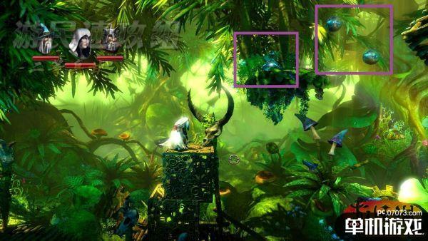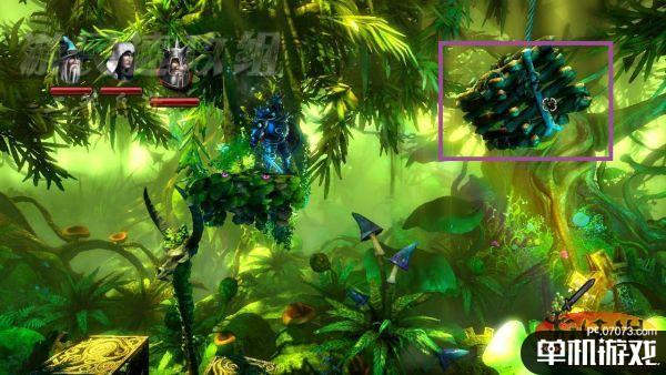 一路前行,偶尔会有哥布林跑出来骚扰一下我们可以轻松解决,来到这个场景后要先利用法师制作两个箱子,然后切换为盗贼踩着箱子跳上平台取得经验瓶子