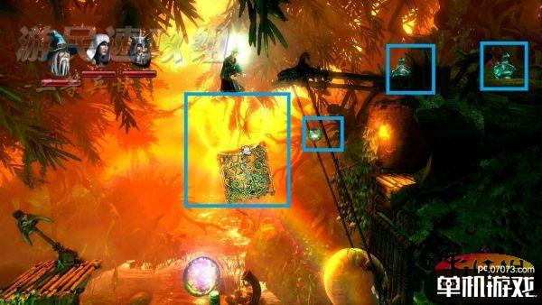 在这里法师要制作箱子砸落高处平台上的两个大经验瓶