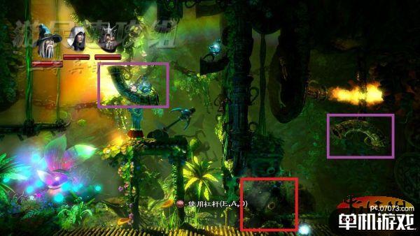 在这个场景发现即使使用气泡也很难上到对面的平台上,使用法师制作两个箱子,站在箱子上用魔法控制底层的箱子使之上升,这样就可以登上高处的平台了,之后的冒险过程中也会用到这种方法取得一些处在空中的经验瓶