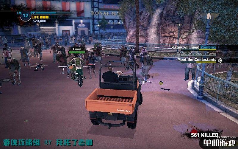 还有两个较难的支线任务:Meet the Contestants和Tastes Like Chicken。Meet the Contestants任务中需要杀掉开始一起参加“TERROR IN REALITY”摩托车撞丧尸那个比赛的Leon。他会骑着摩托撞主角,主角需要利用边上的摩托和汽车等去撞他。这个任务需要有耐心,和充分利用地势躲避摩托车和周围众多的丧尸。玩家可以在Leon停下来的时候上前进行攻击,注意要绕到车后,车头是有锯子的,而且启动时会被撞到。