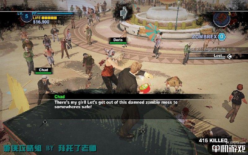 由于时间还早,Chuck可以去解救生还者,获得丰厚的PP值奖励,直到7:00PM。灭火器可以使丧尸冻住,然后用武器攻击可以获得PP值。