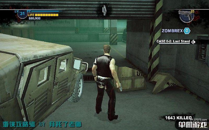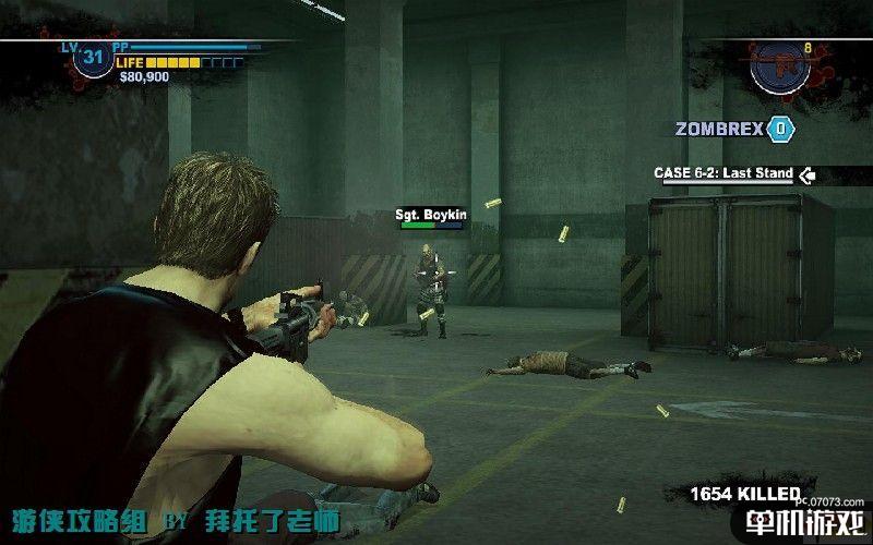 这个BOSS是军队的长官,他拿着机关枪会射击还会长时间的扫射,并且会扔手雷和近身攻击。BOSS的枪攻击不是很高,但是近身攻击会有连招,在打倒主角后还会攻击倒地的Chuck。通过滚翻、障碍物来躲避攻击,趁BOSS长时间扫射和装弹时可以上前攻击。地上那些士兵尸体旁边会有枪支,捡取它们射击。没血的话跑出去找东西补血。