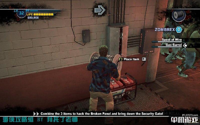 下楼梯找到Generator,然后搬着它前往大门的开关处。还有一样也在楼梯下面的房间内。最后的Gas Barrel在角落里。3样东西准备好后,启动开关,猛按空格键关闭大门。注意先清理掉周围的丧尸,防止它们捣乱。关闭大门后Safe House暂时安全了。Case 6结束。