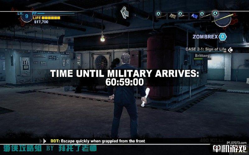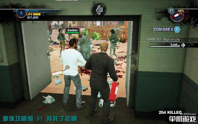 由于时间还早,Chuck可以去解救生还者,获得丰厚的PP值奖励,直到7:00PM。灭火器可以使丧尸冻住,然后用武器攻击可以获得PP值。