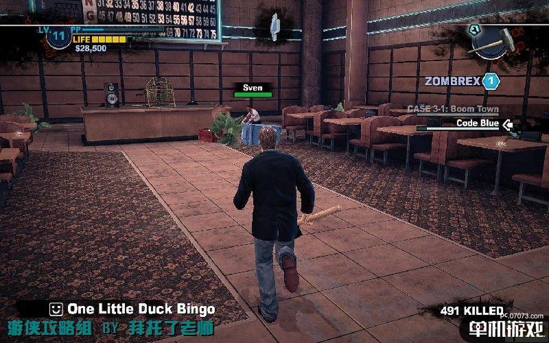 有了这个Zombrex,就可以去做Once Bitten,在Royal Flush Plaza上电梯去2楼解救Jared。他被丧尸咬过,需要Zombrex,而且行动不便。Chuck可以背着他或用轮椅载着他把他带回Safe House,可以获得丰厚的PP值奖励。