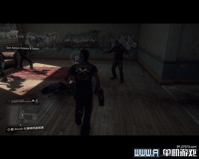 step1.前往朗达车库北面两个街区的汽车旅馆,在汽车旅馆二层过道可以看见生还者安娜(可以从左侧楼梯或者是中央的货车爬上汽车旅馆二层)。