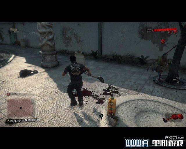 另外僧侣还会躲在花园的石柱上,捡起周遭的杂物就向他扔去,那么僧侣就会掉下来,那么尼克就可以狂揍他一顿(但都不宜恋战)。当僧侣处于虚弱时,靠近可以按Y+B键攻击他。