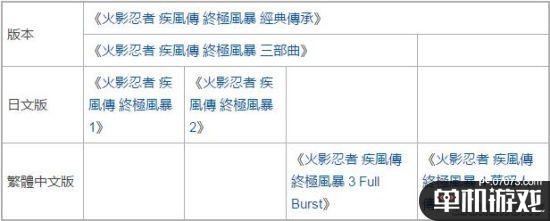 需要注意的是,本次的合集作品中只有《火影忍者疾风传:究极忍者风暴》的后两部作品会包含繁体中文,而前两部作品只有日文版。虽然略显遗憾,不过令人欣慰的是,前段时间公布的新作《火影忍者博人传:忍者先锋》将完全支持繁体中文。