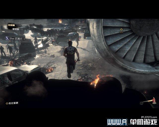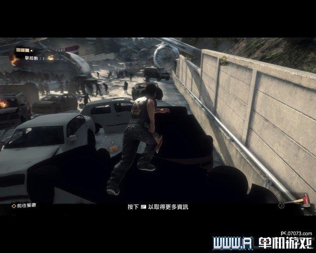 step6.按LB键可以快跑,爬上车顶可以短暂躲避下方丧尸的爪击,借助各车车顶去到坠机飞机的内部。