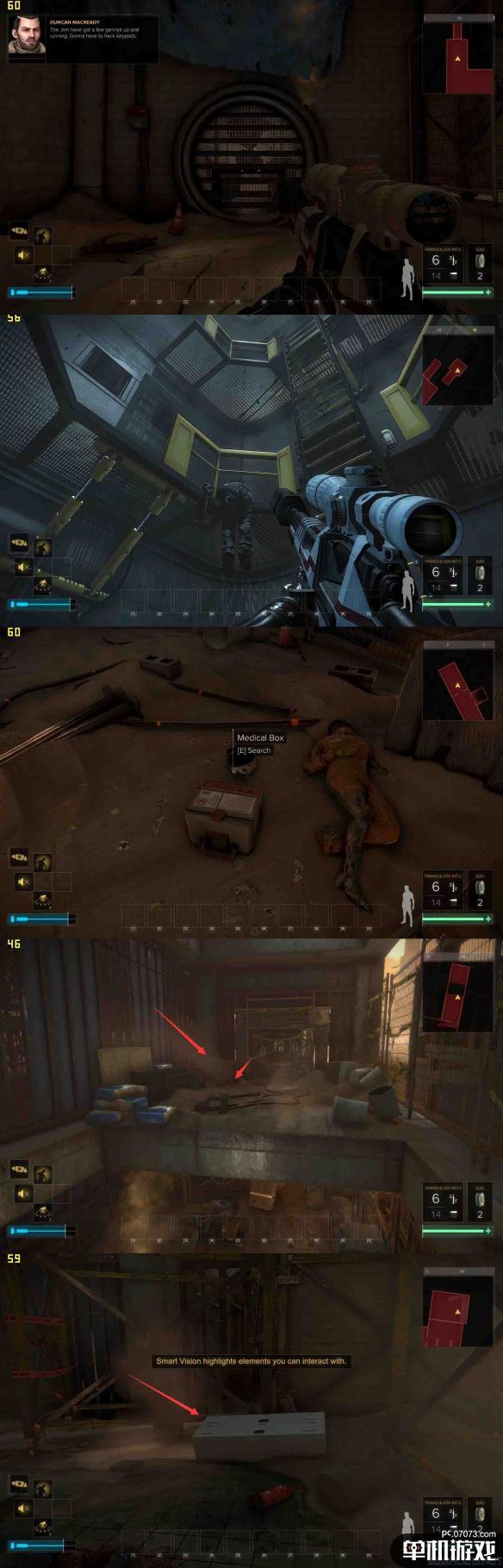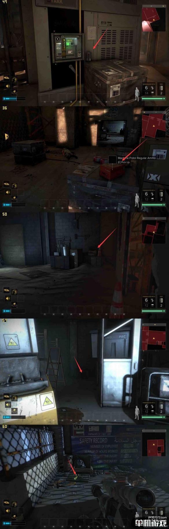 第三张长图第(5)张,是一个密道。这里进毒气之后,往左走一直走,地上会有大量的子弹