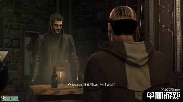 之后再联系Smiley,他表示其他特工已经在皇后区的酒吧逮到了这位Stanek先生。Jensen可以上前问话,了解到他为恐怖组织制造炸弹并嫁祸给ARC(谎言),主因是他的女儿被恐怖组织的人所挟持。
