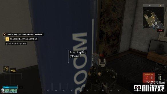 来到Miller家门后,从走廊过道跳到Miller公寓的窗台上就可以直接进去。在厨房中可以骇入手提电脑,阅读3封邮件。接着用拳头锤击沙包,旁边密室的门就会打开。
