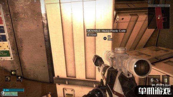 之后从扇叶后的梯子爬到上层,去到一个蓝色简易洗手间前需要抬起并移除拦路的大箱子才能发现前路。这边都是教学关卡,也暗示着玩家之后将经常与管道、障碍物等进行互动。接着按C以蹲伏姿态穿过一个工地入口。