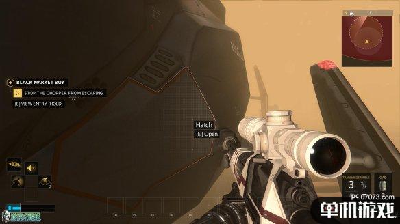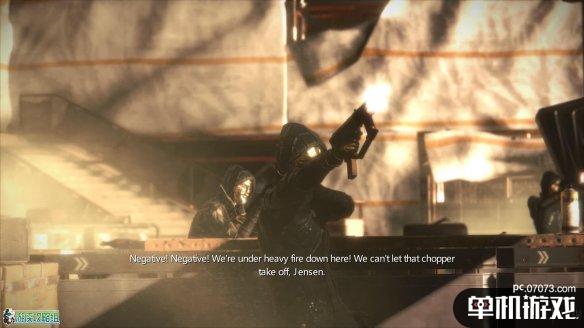 这边可以直接从高处跳下,并且启动Jensen的特殊能力,不会受到伤害。下去之后场地会立刻被沙尘暴包围,敌我的视线都受到很大干扰。这边建议直接从左侧绕到直升机下方,在飞机头处可以进行骇入,沿途几乎不会遭遇战斗。