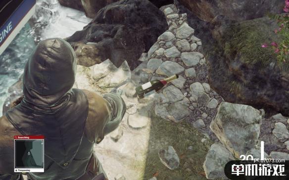 7、还是要那件鸟儿人装,来到逃跑的那艘快艇那里,有个瓶子打碎它,把钥匙拿走