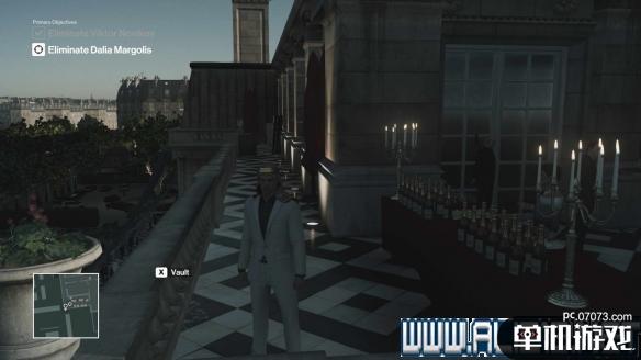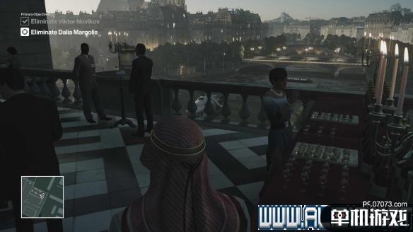 开局之后烟花引爆装置就在你手边,拿起来引爆后,按Ctrl看看男目标在哪,然后沿着走廊他走过去(注意别被监视录像头看到)。