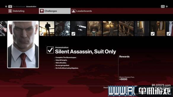 昨晚摸索了半天,试着不换装全程潜行只杀目标,花了我30分钟,不过好歹有13W2的分数,给了个五星评价。