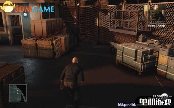 关卡开始,从木箱拾取硬币,躲到右边的货箱后面,朝着如图位置投硬币。