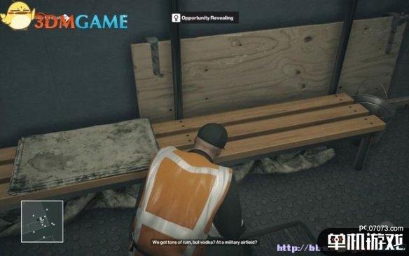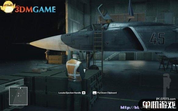 在正门的警卫室换上警卫服装后,在基地的前院偷听两名维修工的谈话,得知要杀的那个象棋大师非常在意飞机上逃生喷射座椅的安全,并且会亲自测试这些设备的安全性。