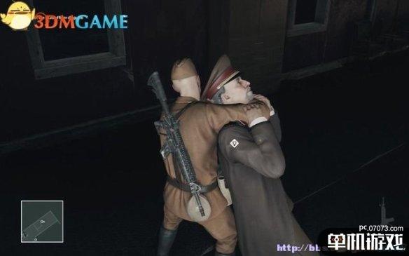 拾取掉在地上的手枪并换上将军的服装,这样在基地就通行无阻了。