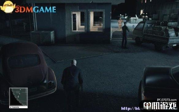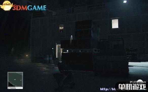 来到建筑的左侧,等两名聊天的维修工返回机库,里面巡逻的士兵往回走,再从警卫后面的小屋窗户穿过去。