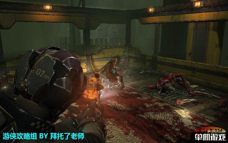 接着做升降梯下去,打开前面的门,会有怪物爬上来,干掉它们。