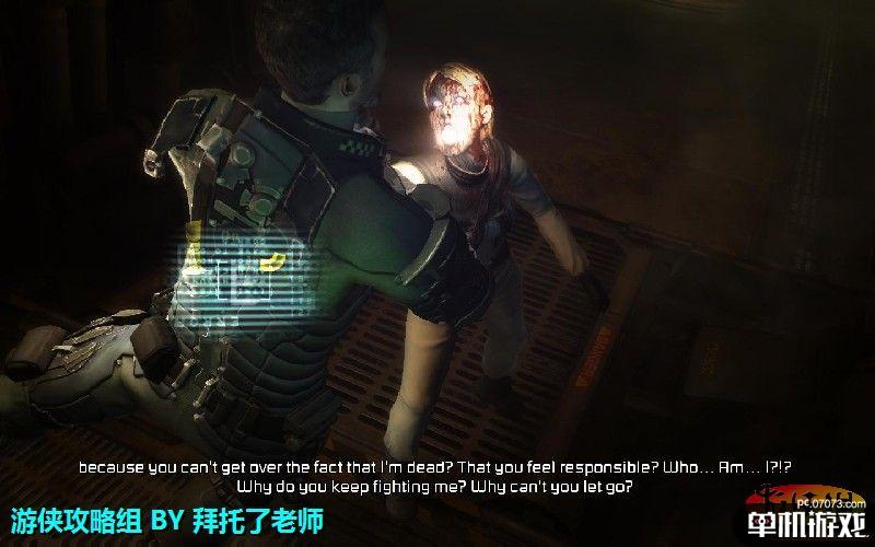 从大型升降机中出来开门后,Nicole的幻象再次出现并掐住了Isaac。猛按E键挣脱。