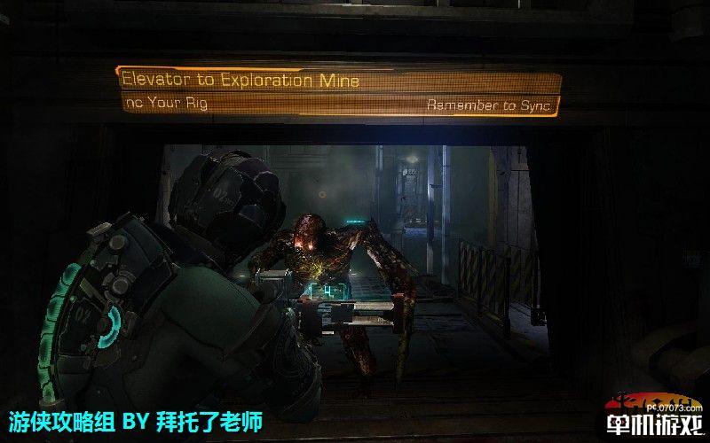 走过通道进入大型升降机并启动它,干掉途中出现的大量怪物。